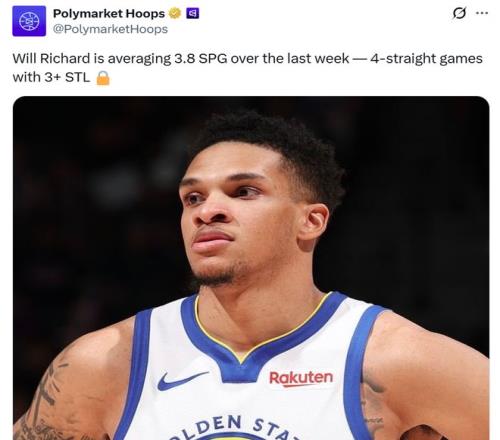 这是理查兹连续第4场比赛交出至少3次抢断,过去4场合计送出15次抢断,场均交出3.8次抢断,是勇士队推动快速防守反击的关键一环。