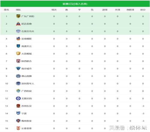 中甲积分榜